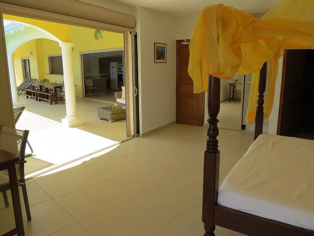 - Deux magnifiques chambres climatisées de près de 25 M2 chacune. L’une avec un lit en 180 à baldaquin et moustiquaire de deux personnes, l’autre avec un lit en 160 de deux personnes avec moustiquaire. De larges baies vitrées ouvrent sur la terrasse et la piscine. Chacune ont une salle d’eau attenante.