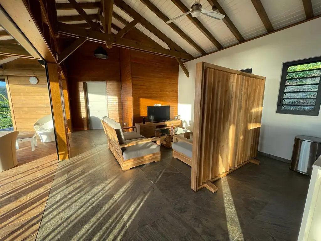 La villa se compose d’un espace intérieur de 115m2 et d’une magnifique terrasse de 50m2 faisant face à la Réserve Cousteau et aux îlets Pigeon.